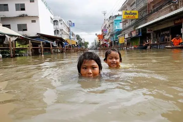 در تایلند به دلیل جاری شدن سیل ناشی از بارش شدید باران، ساکنان مجبور به ترک خانههای خود و پناه بردن به پشت بامها شدند.
