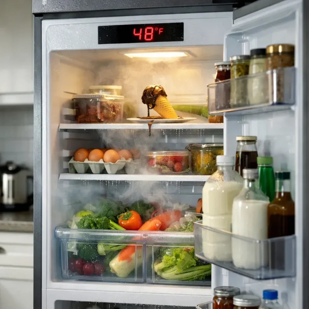 دلیل اصلی نگهداری مواد غذایی و نوشیدنیها در یخچال، جلوگیری از فاسد شدن و رشد قارچهاست؛ اما باز ماندن طولانیمدت درب یخچال باعث افزایش دما و گرم شدن محتویات آن میشود. سبزیجات و لبنیات بسیار حساس هستند و نفوذ هوای گرم به سرعت باعث رشد قارچ و گندیدگی آنها میشود.