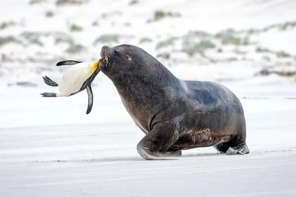 پنگوئنها هیچ دفاع طبیعی در برابر حملات شیرهای دریایی ندارند و به شدت آسیبپذیر میشوند.