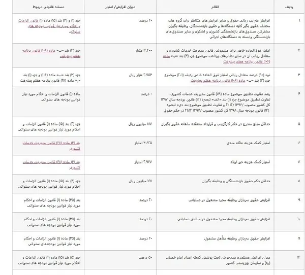 اعلام جدول افزایش حقوق کارمندان بازنشستگان و فرهنگیان