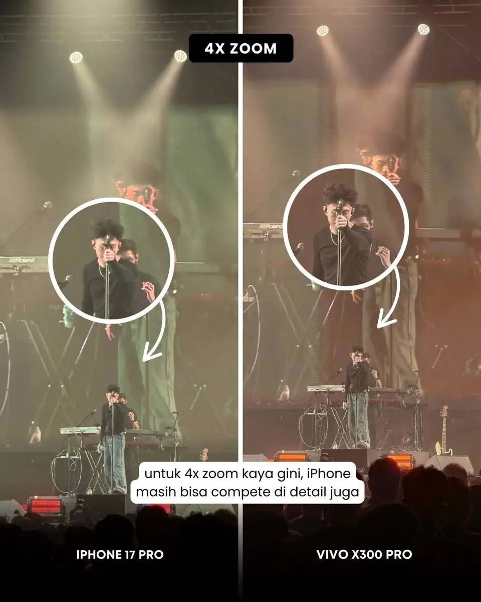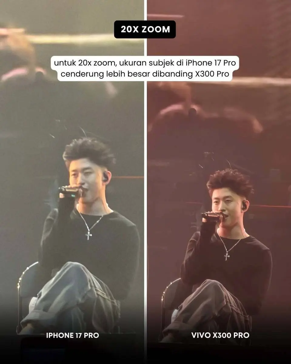 در یک بررسی میدانی، دوربین ویوو X۳۰۰ پرو در زوم ۲۰ برابری جزئیات بیشتری نسبت به آیفون ۱۷ پرو ارائه داد. با این حال، در فیلمبرداری ۴K۶۰ هر دو گوشی عملکردی تقریباً برابر داشتند و برای تولید محتوا در شبکههای اجتماعی مناسب هستند.