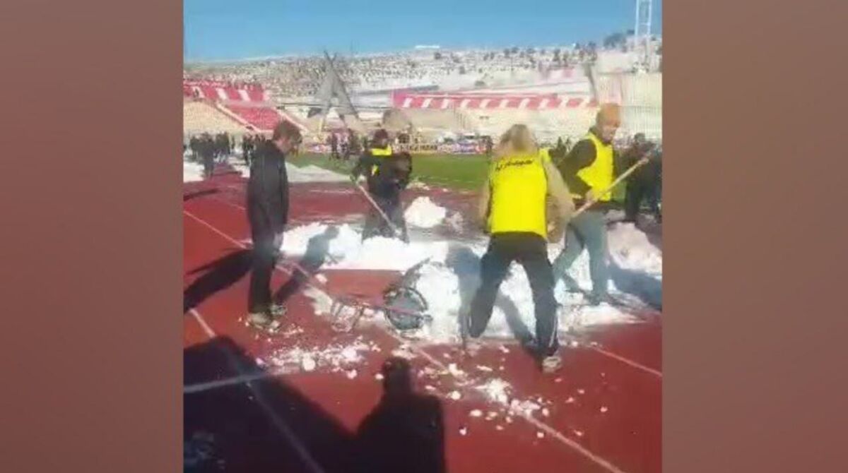 ویدیو| برف روبی از کنار زمین یادگار امام در آستانه بازی تراکتور!