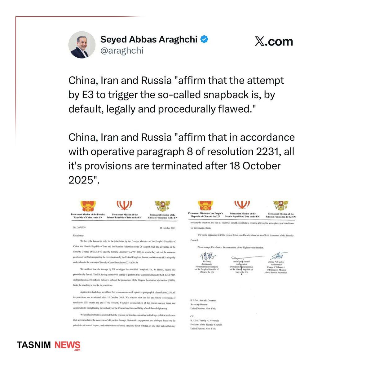 حالا هم مجتبی زارعی عضو کمیسیون امنیت ملی در واکنش به سخنان اخیر ظریف در شبکه اجتماعی ایکس نوشت: اگر دکتر ظریف بخواهد این موقعیت حساس را درک نکند دادستانی کل باید در مراقبت از امنیت ملی فورا او را احضار کند! به عنوان رئیس کمیته قدرت نرم و تهدیدات شناختی کمیسیون امنیت ملی و سیاست خارجی به دکتر ظریف و رفقایش هشدار می دهم حالا که تمام تیرهای در کمان آمریکا و اروپا و اسرائیل در اسنپ بک و برجام تمام شد؛ و حالا که قطعنامه ۲۲۳۱ هم منقضی و باطل شد؛ و حالا که روسیه به عنوان رئیس دوره ای شورای امنیت و شریک راهبردی ایران هم پایان ننگین اسنپ را اعلام کرد و حالا که بیش از ۱۰۰ کشور مستقل و غیرمتعهد جهان در نشست اوگاندا هم می گویند اسنپ بک تمام شد و حالا که دبیر شعام پبام جامع امام خامنه ای حکیم را به آقای پوتین برای این نوقعیت خطیر تقدیم کرد؛ شما سکوت را رعایت کنید و به روند ملّی در ایران و اجماع جهانی بپیوندید؛ آقای ظریف! شما را فردی وطن خواه می شناسم اما اگر اینک در چارچوب مناسبات امنیت ملّی سکوت نکنید و باز هم گویا عیان شدن خسارتِ محض برجام را نخواهید ببینید و دفاع شخصی را بر دفاع ملّی ترجیح دهید دادستانی کل موظف است شما را بخاطر اخلال در امنیت ملی فورا احضار و ارشاد کند؛ لطفا وسط جنگ با آدمخوارانِ ضدایرانی به سود دشمن کوچهای جدید باز نکنید!