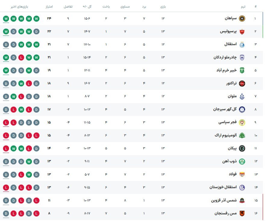 آلومینیوم اراک ۰-۰ سپاهان اصفهان (ساعت شروع ۱۶:۳۰)